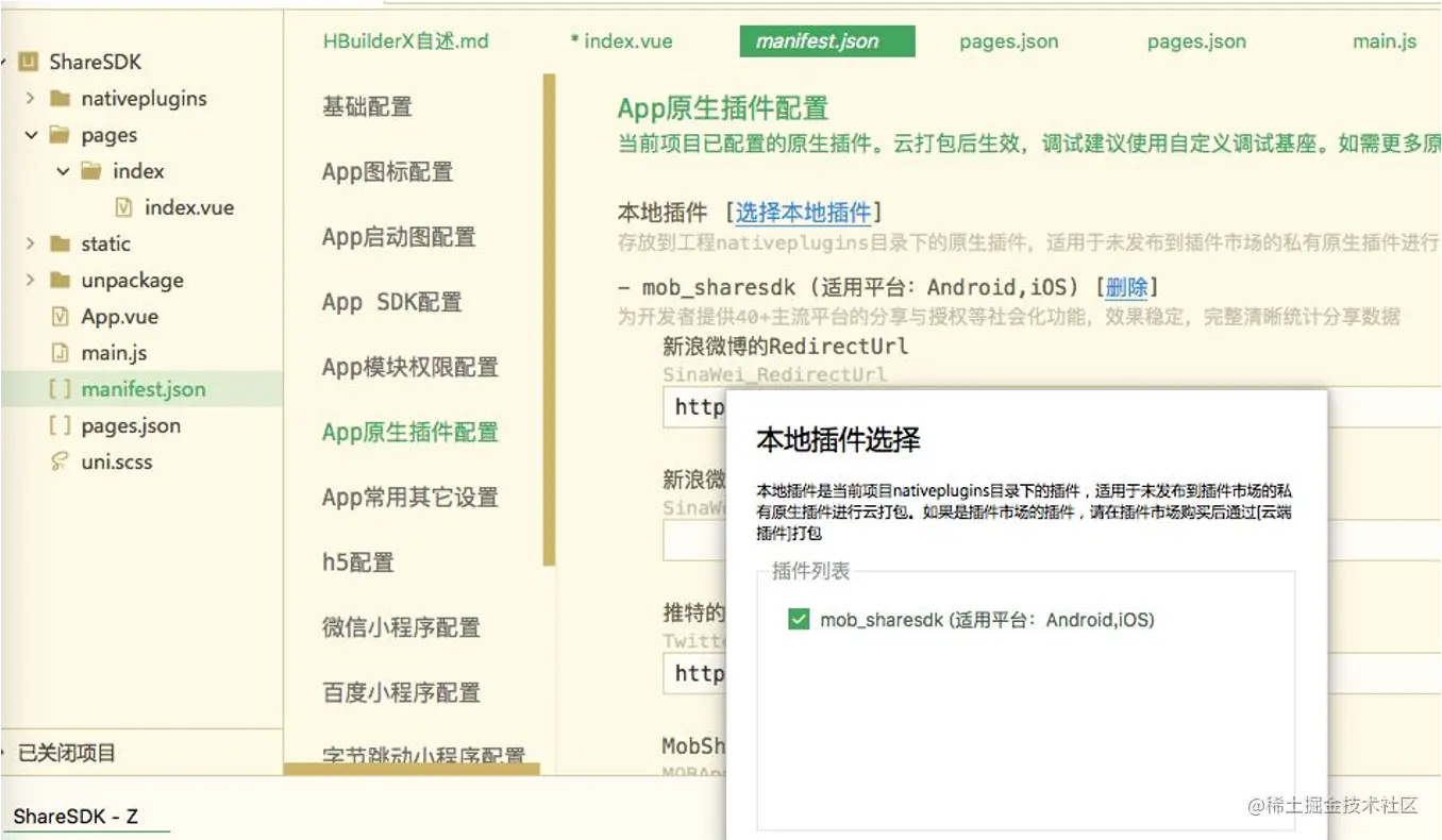 ShareSDK是一种社会化分享组件,免费为App提供社会化功能,我们也推出众多平台的SDK以及插件,近期刚刚上线Uni-App的插件集成,本文讲述的是如何在Uni-App中集成ShareSDK。
