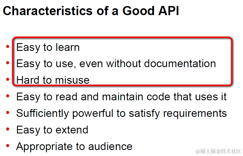 这也符合那份著名的来自Google的API设计最佳实践文档里提到的,好的API应该满足的条件之一:易学易用,自描述,不易造成误解。
