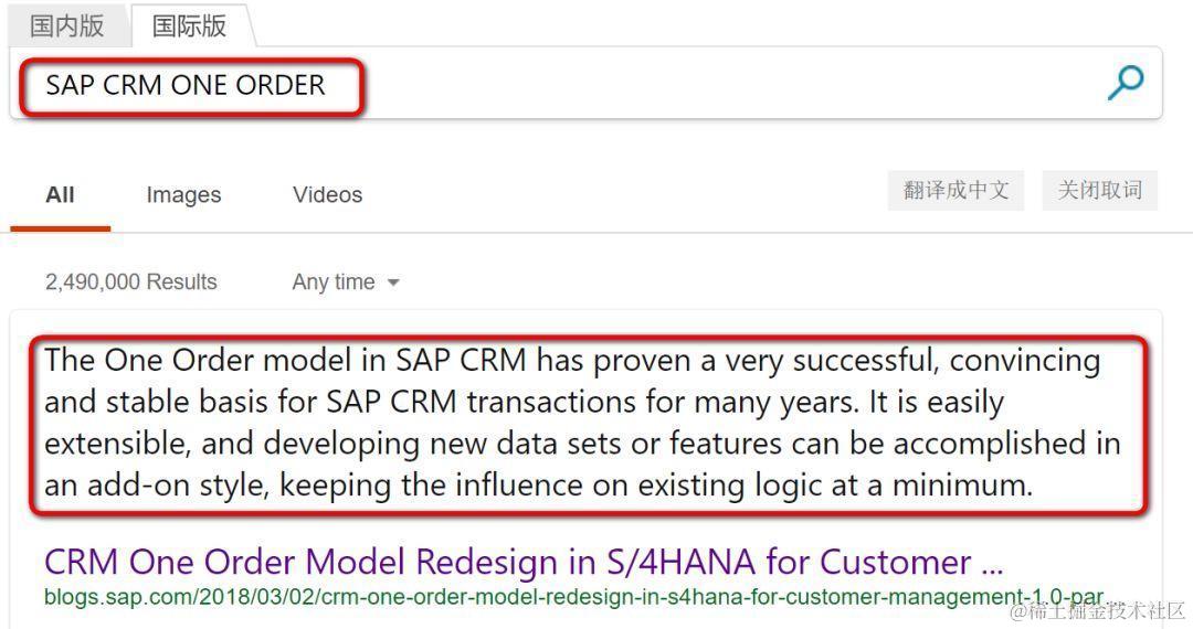 SAP One Order框架有多成功?搜索引擎输入关键字"SAP CRM ONE ORDER", 第一条搜索结果即Jerry写的一篇博客。其中第一段话就给大家做了详细的阐述: