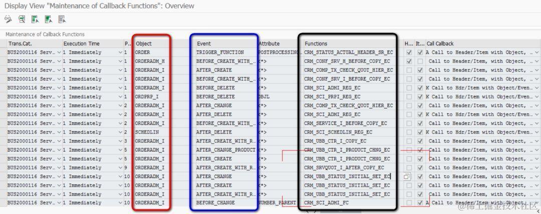 第三列黑色的ABAP函数,就是这些事件的监听函数。