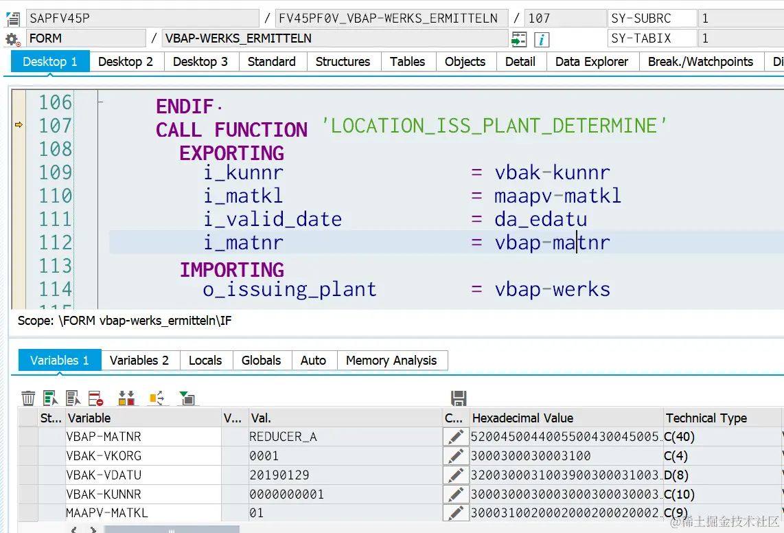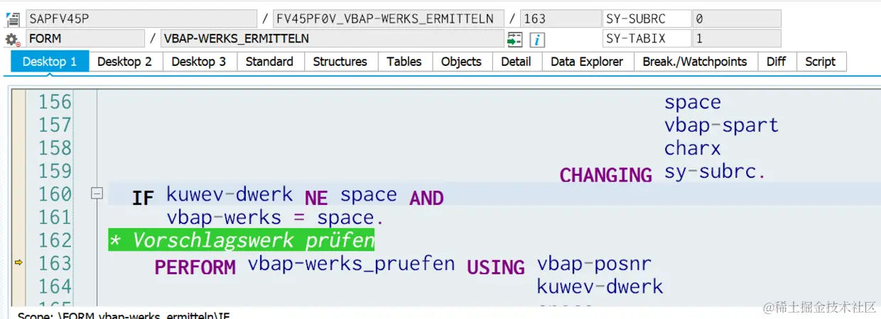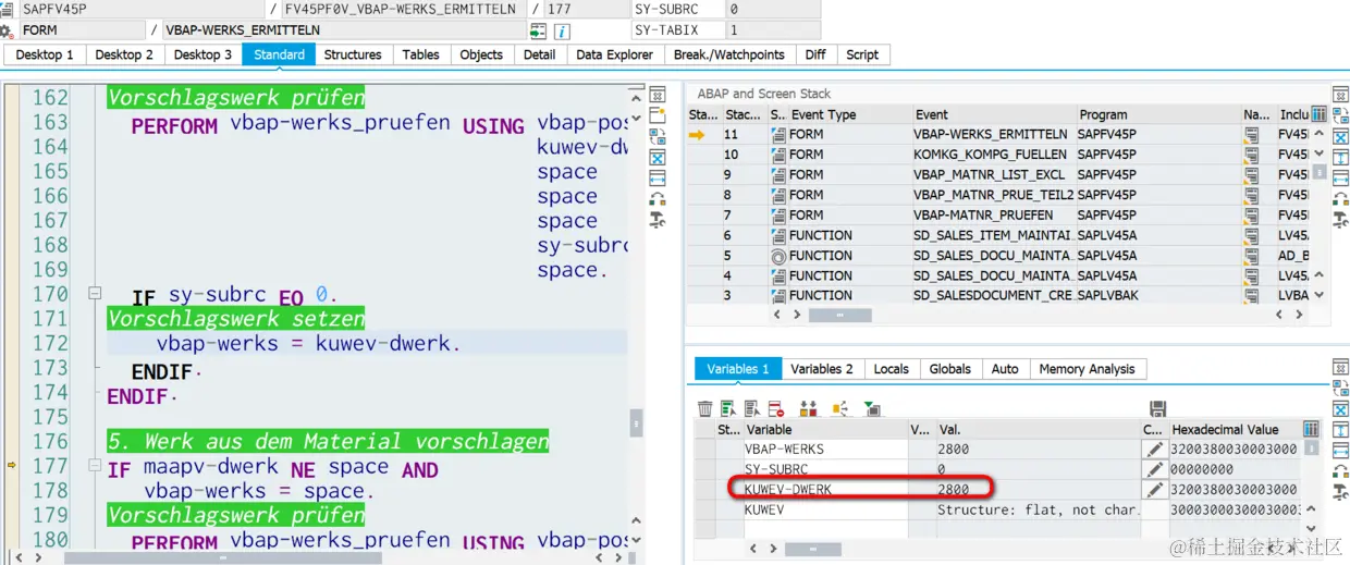 通过阅读SAP S/4HANA有关生产订单的标准代码发现,生产订单使用的plant工厂数据来自表VBAP的字段WERKS。