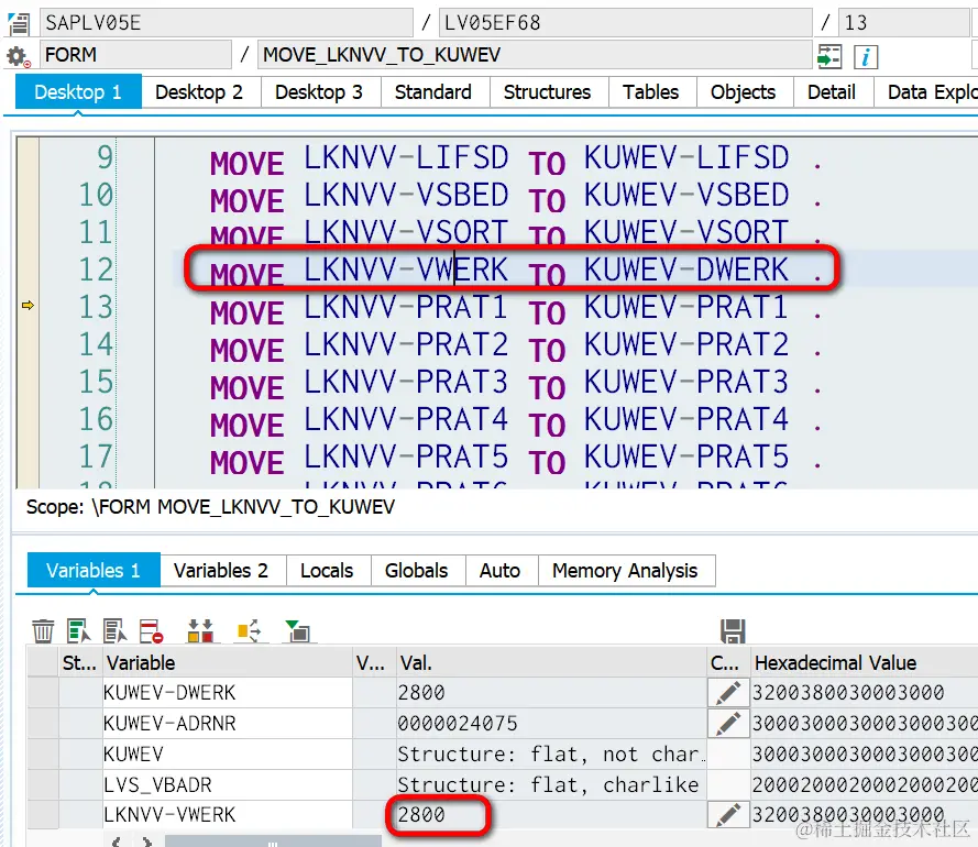 这个2800来自结构体KUWEV的字段DWERK Delivering Plant:Ship-to Party’s View of the Customer Master Record