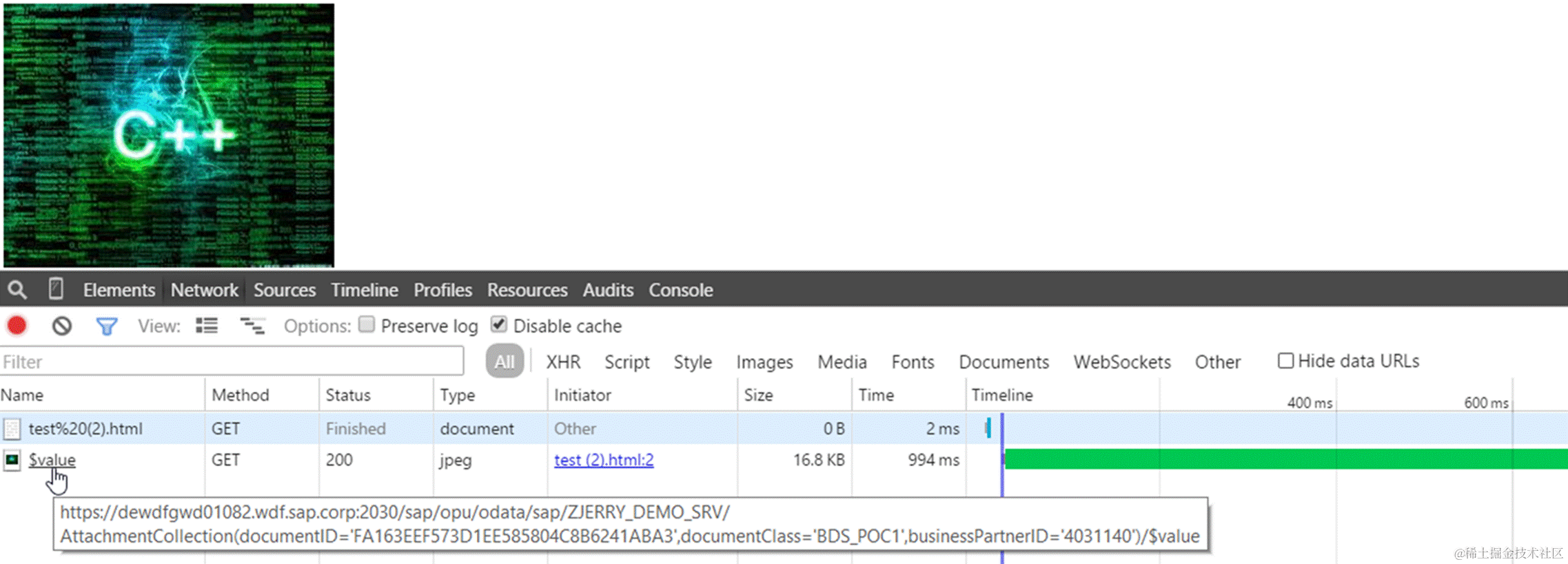 Open it in Chrome, and you can observe exactly the same network behavior as when you open the application with an image in Fiori ui: