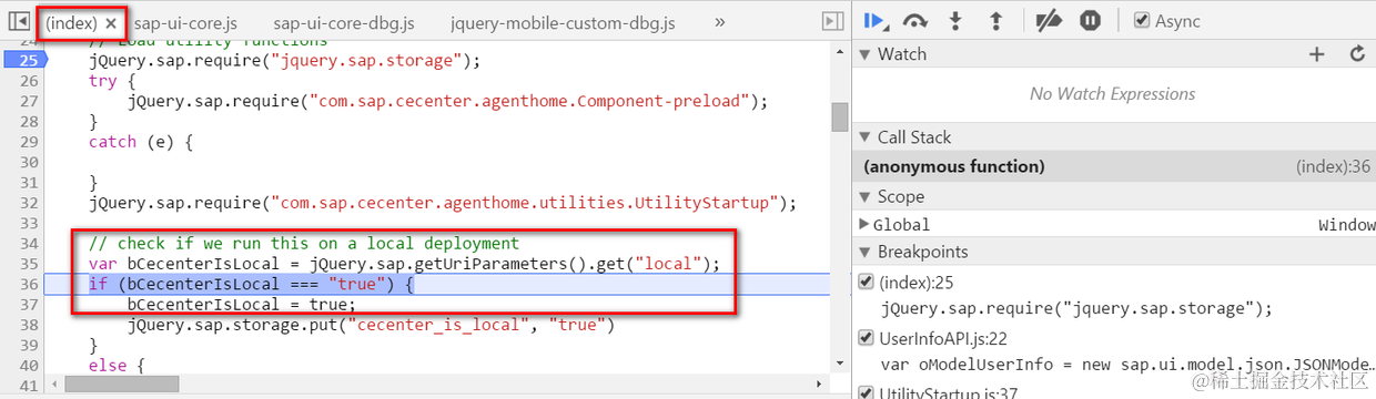 var bCecenterIsLocal = !!jQuery.sap.getUriParameters().get(“local”);