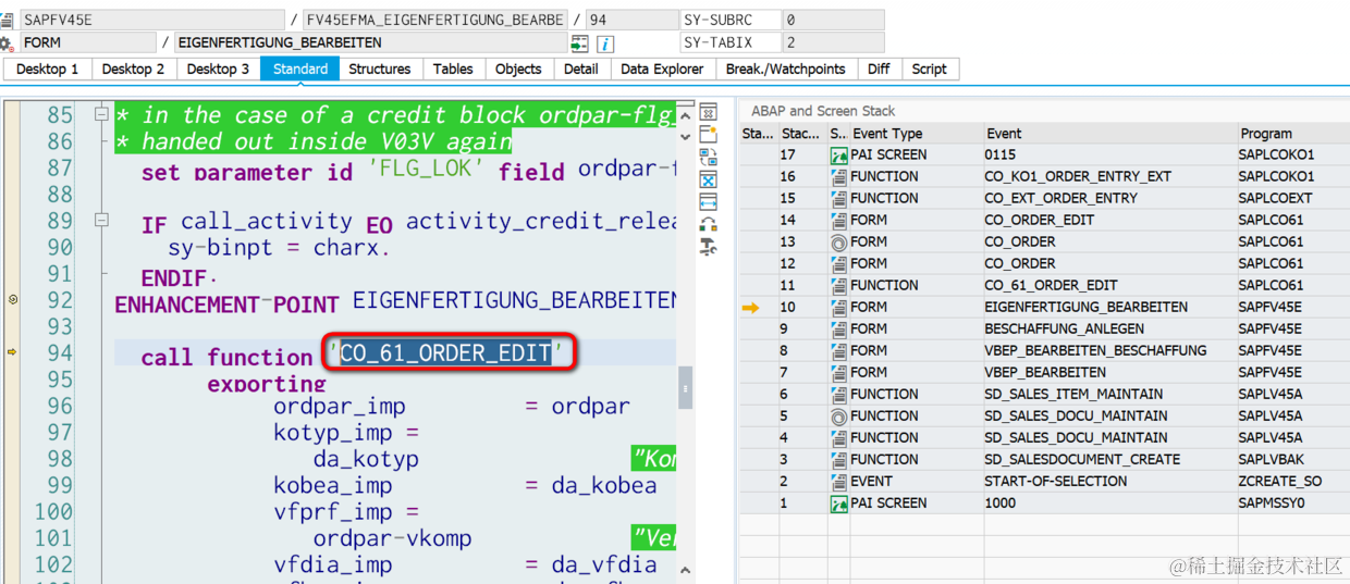 观察这个函数内部的调用栈,发现一个subroutine EIGENFERTIGUNG_BEARBEITEN.: