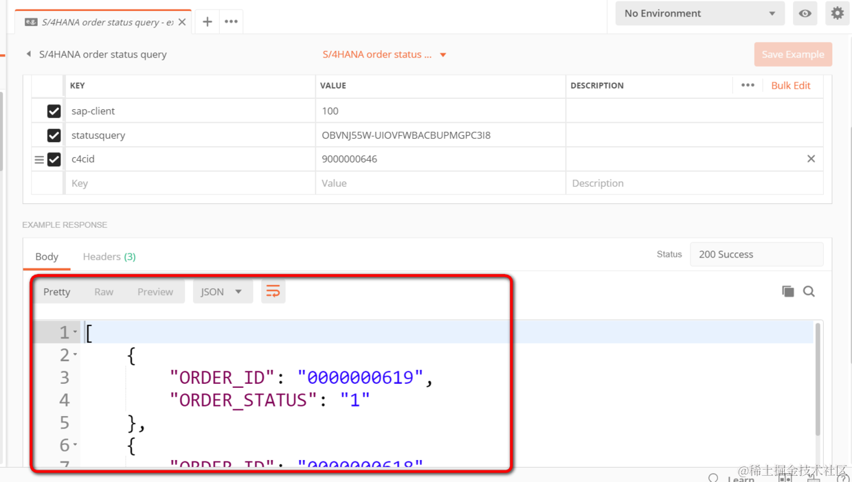 我们在postman里发送某个请求,等响应回来后,点击Save Example把这个请求和响应作为例子保存。