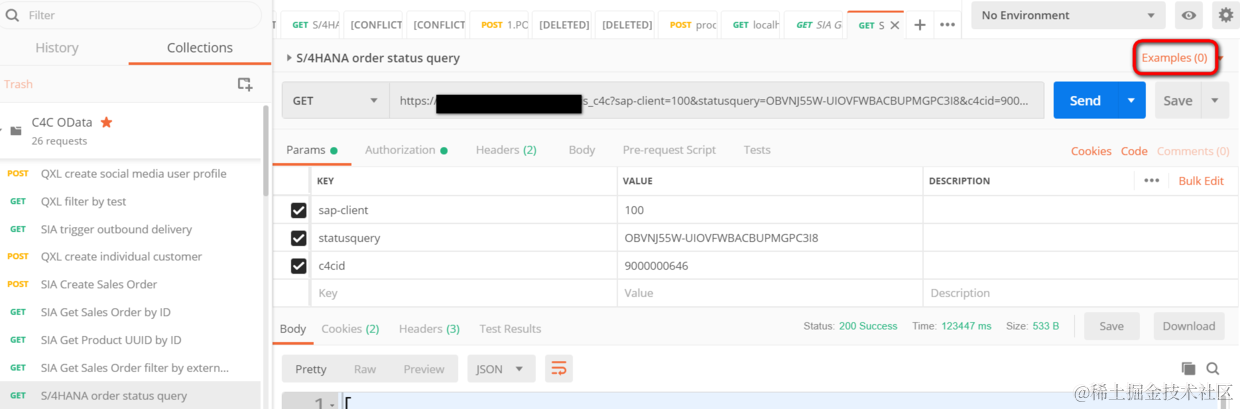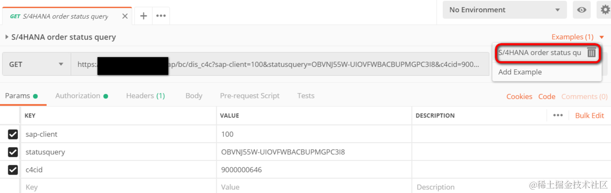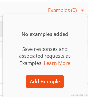 每个HTTP请求,默认是没有example例子的,有时候我们想把某个请求和响应保存下来,这样即使哪一天远端系统不可用,至少在postman里这些响应仍然可供参考。