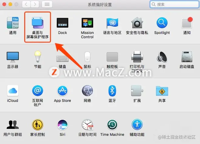 一、在**“系统偏好设置”中直接找到“桌面与屏幕保护程序”**图标设置