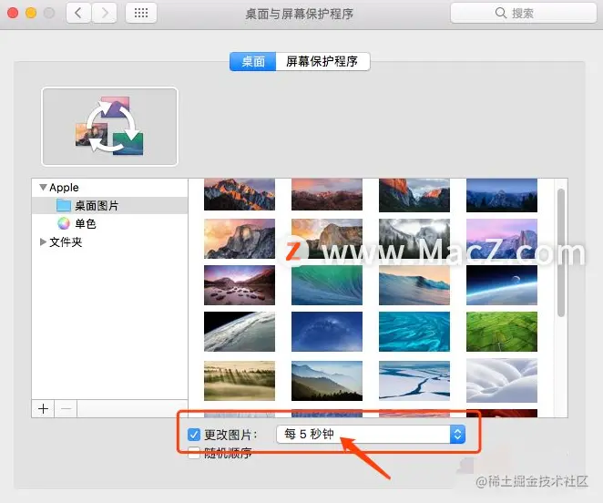 以上就是如何开启Mac的壁纸自动更换设置?全部内容,想了解更多Mac知识,请关注macz.com。