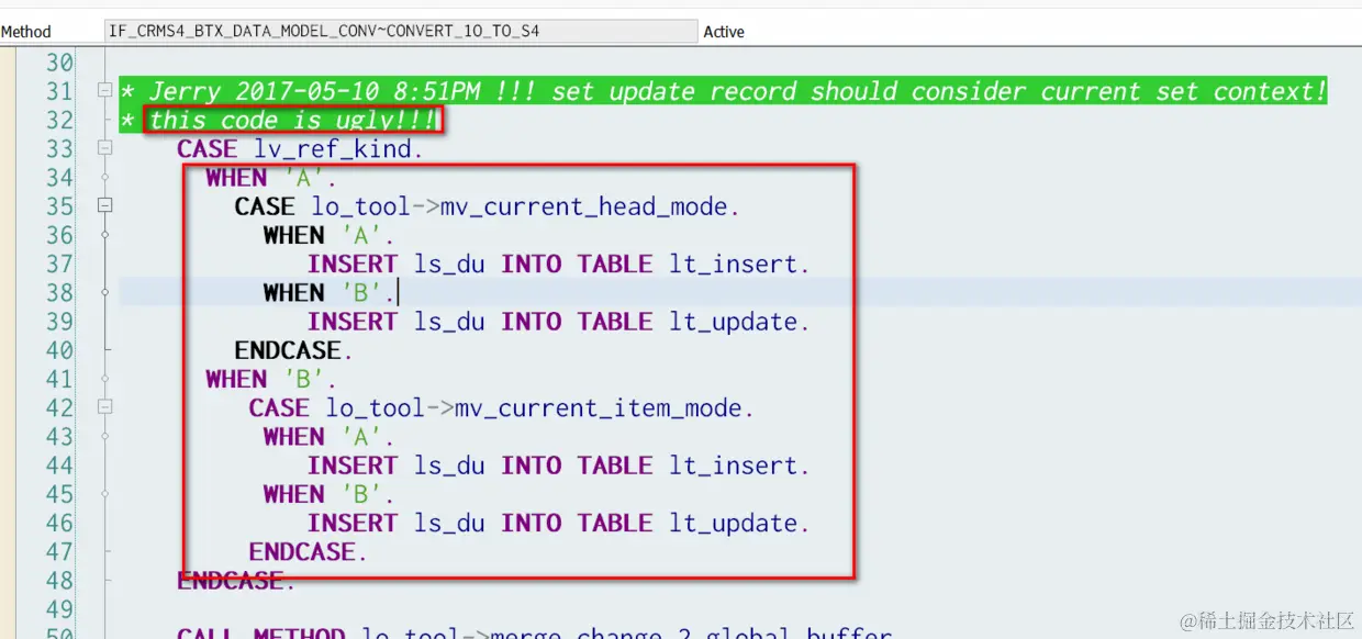 每一处坑趟过之后都增加了我对one order的理解,我把这些bug当作我的一笔财富。比如看这个"this code is ugly"的注释,点进去看: