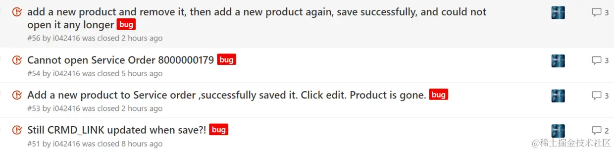 举个例子: 创建新的service order,维护header的shipping data,此时order和shipping data的mode 都是creation,然后创建line item,添加product,header的shipping data带到line item,然后在line shipping data做修改,item的mode变成了change,此时不存盘,直接删除该item,然后马上另外创建一个item,继续编辑,此时第二个item的mode是creation,前一个item的change mode变为deletion,然后再删除第二次加的line item,不存盘,再创建第三个product,维护一些数据,存盘。此时我代码里的buffer处理会出问题,存到DB确实有一条item数据,但是已经corrupt掉了。 由于我buffer处理logic有bug, 我花了很大功夫最后发现是第二次被删除的那条数据的内容被错误存到了DB里: