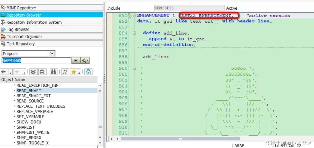 实现步骤非常简单,在ST22标准程序SAPMS380的subroutine read_snapt内创建一个隐式增强。