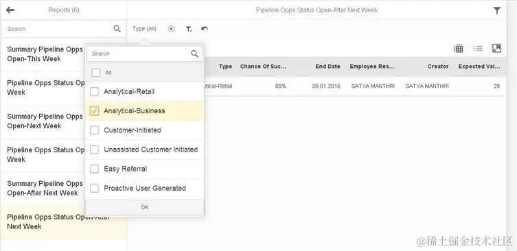 Customer report有两种类型的filter: