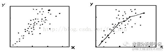 下面这幅图就能比较好的说明问题,x与y的关系,如果用参数模型估计,模拟出来的模型就一定是要么线性的,要么曲线的。不会模拟出又具有线性的部分,又具有非线性的部分。