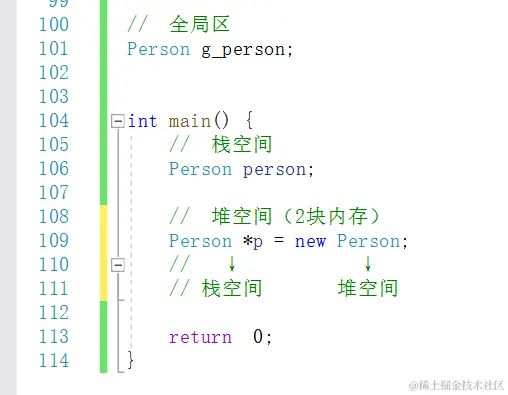 1)Person person() 这种写法不是创建对象 的写法,无论在全局区、栈空间