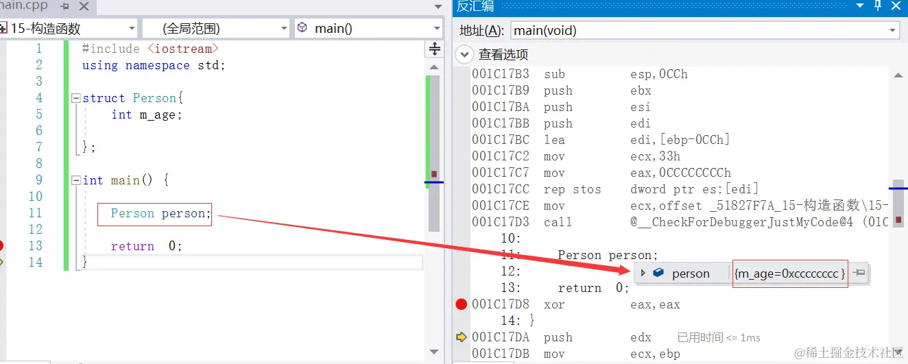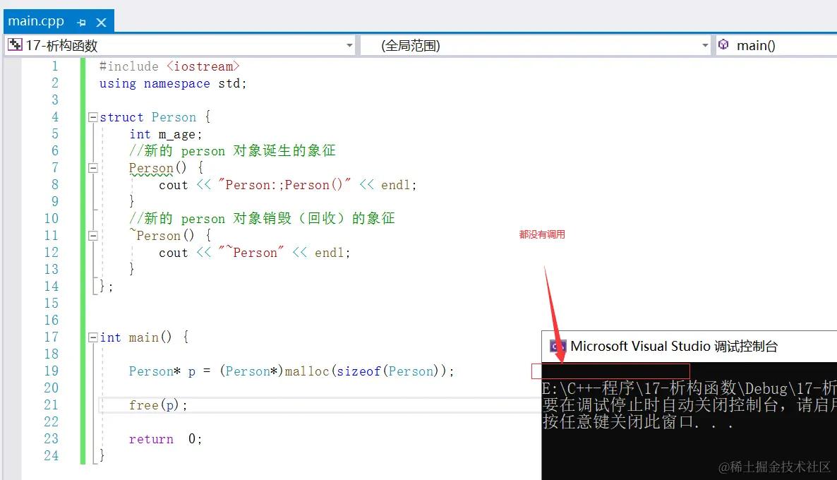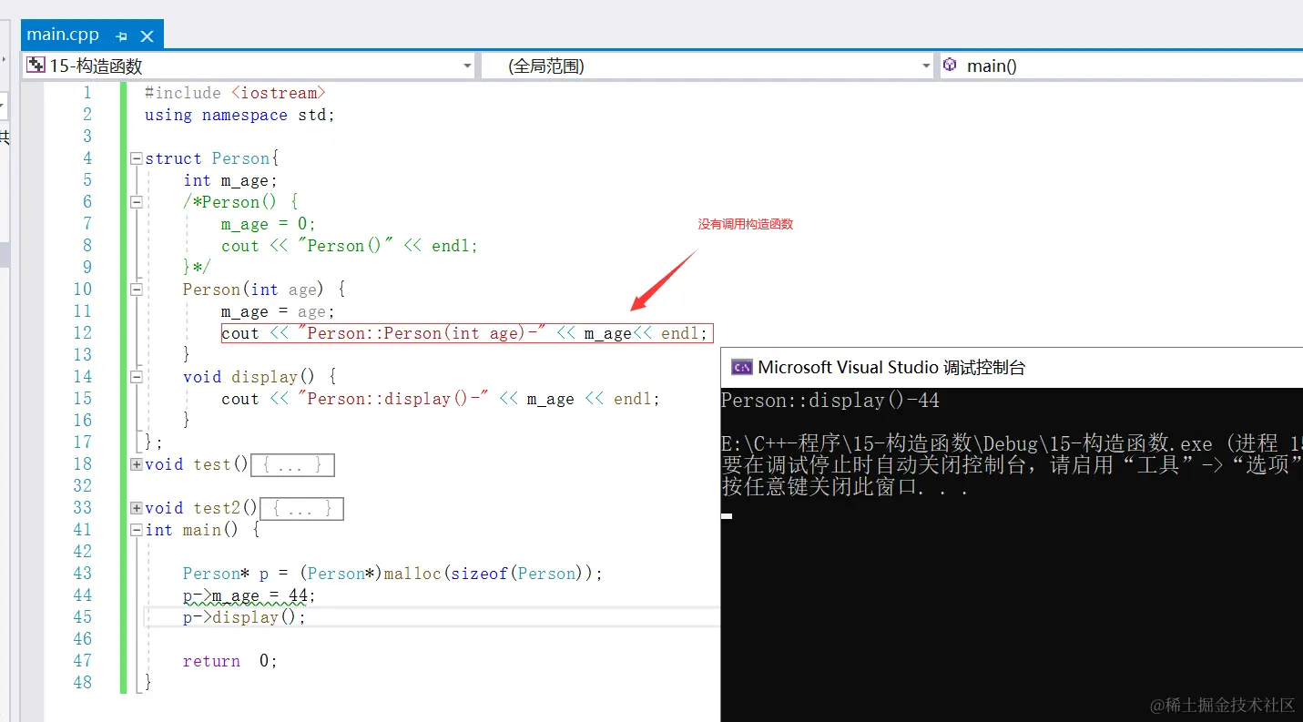 根本没有调用 call Person::Person(地址) 这句汇编语言