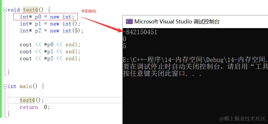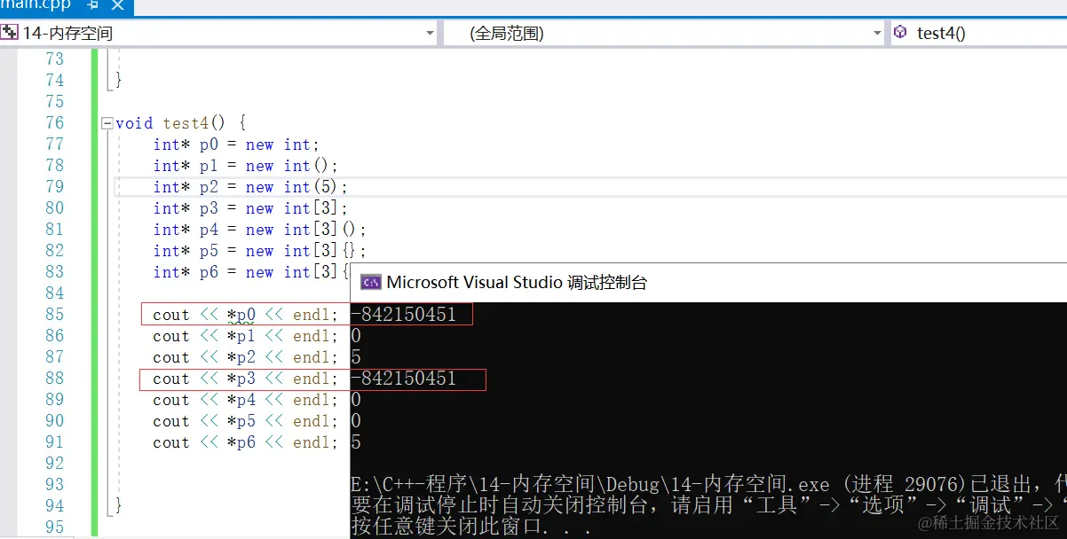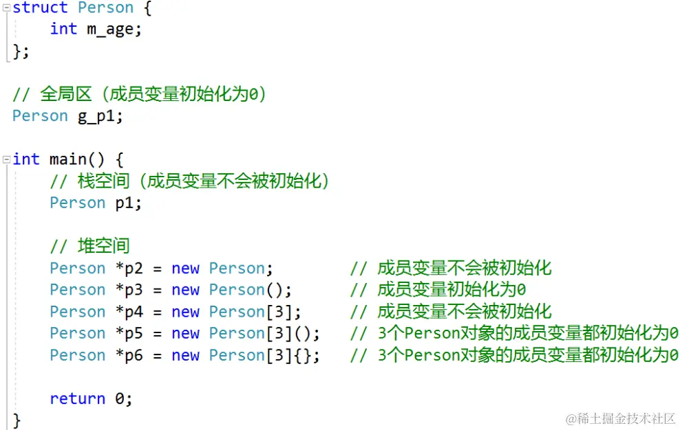 如果自定义了构造函数,除了全局区,其他内存空间的成员变量默认都不会被初始化,需要开发人员手动初始化