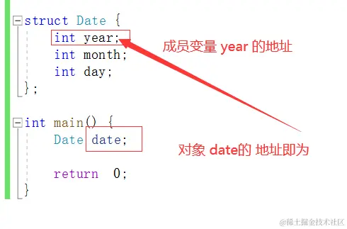 类中的成员变量 ,在创建对象时会在内存中开辟成员变量对应类型大小的连续内存(暂不考虑:内存对齐),如int在64位系统占用4个字节,对象的地址量即类中按顺序第一成员变量的地址