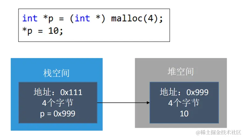 下面的person对象和p指针的内存都是在函数的栈空间,自动分配和回收