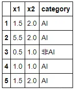 | for index, value in result['x1'].items(): result['拟分类'][index] = KNNClassify(LearnSample, [value,result['x2'][index]], 3)result.head() |