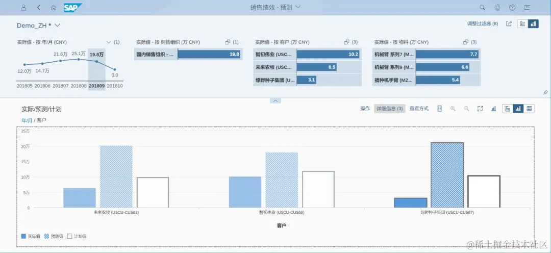 作为销售经理,您可以通过此应用比较销售组织、客户和物料等不同维度上的计划和实际销售数据。通过执行此操作,您可以分析您的销售目标的实现程度,从而深入了解您当前的销售业绩。