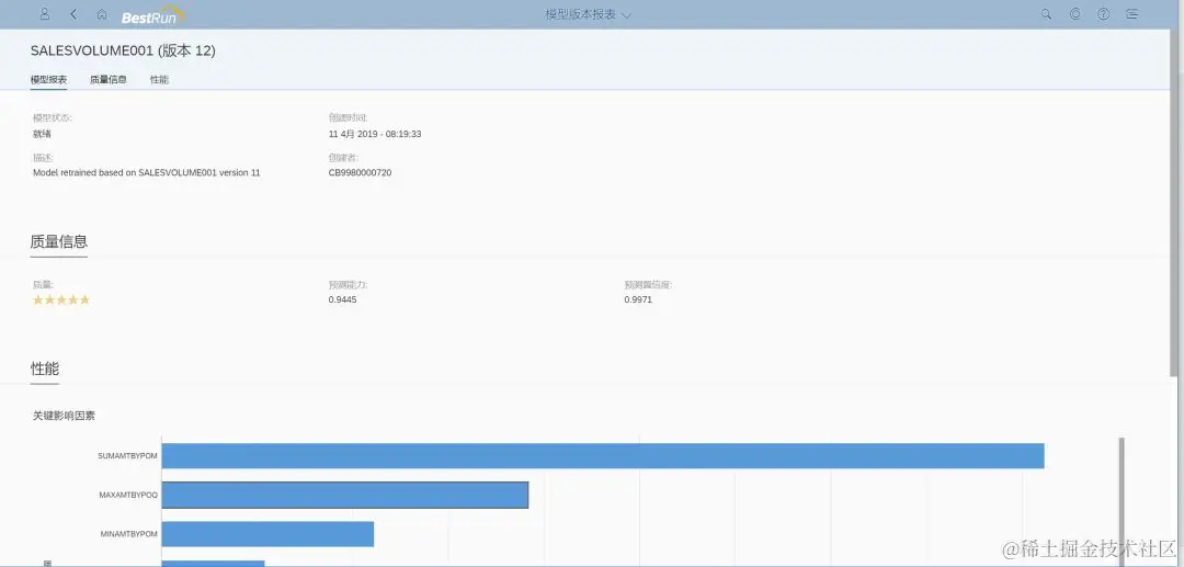 下图是该应用使用到的预测模型在训练后得到的一些综合指标和参数。