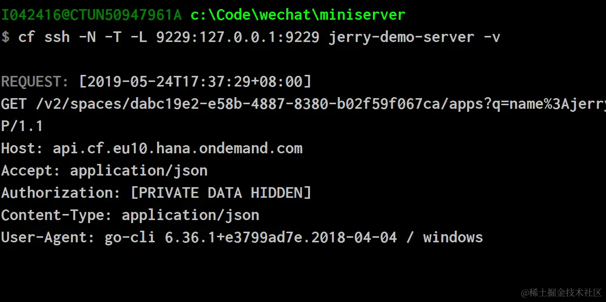 这个命令将CloudFoundry上远程应用的9229端口和本地9229端口上建立了一个SSH安全隧道。