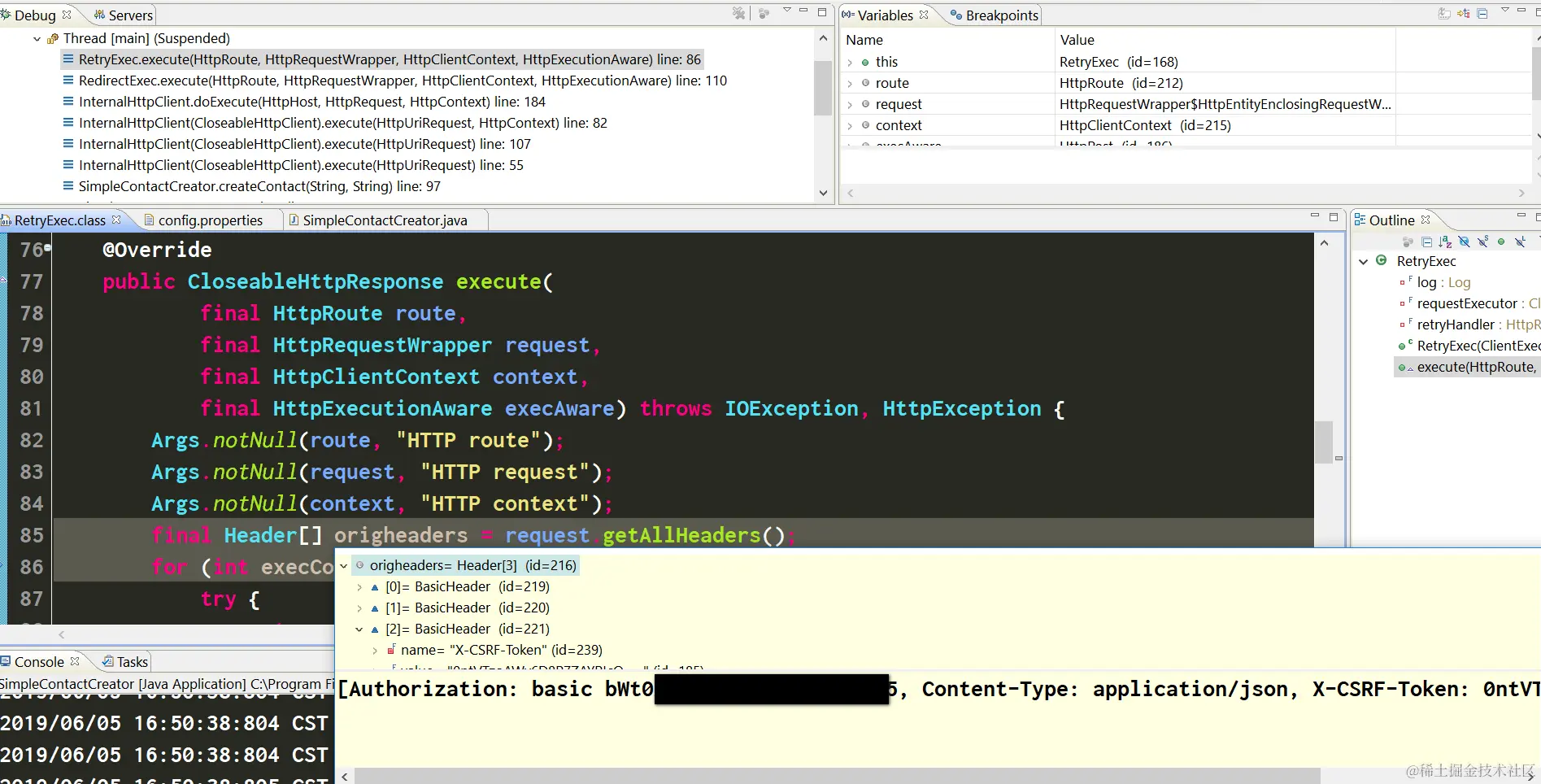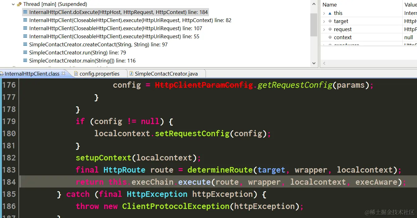 首先进入HttpClient的单步调试:InternalHttpClient.doExecute方法: