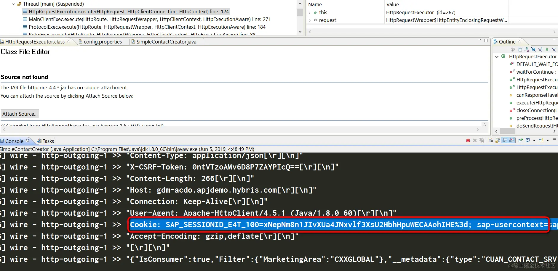 看来我们必须进入httpcore-4.4.3.jar这个apache HttpClient的实现里去调试。