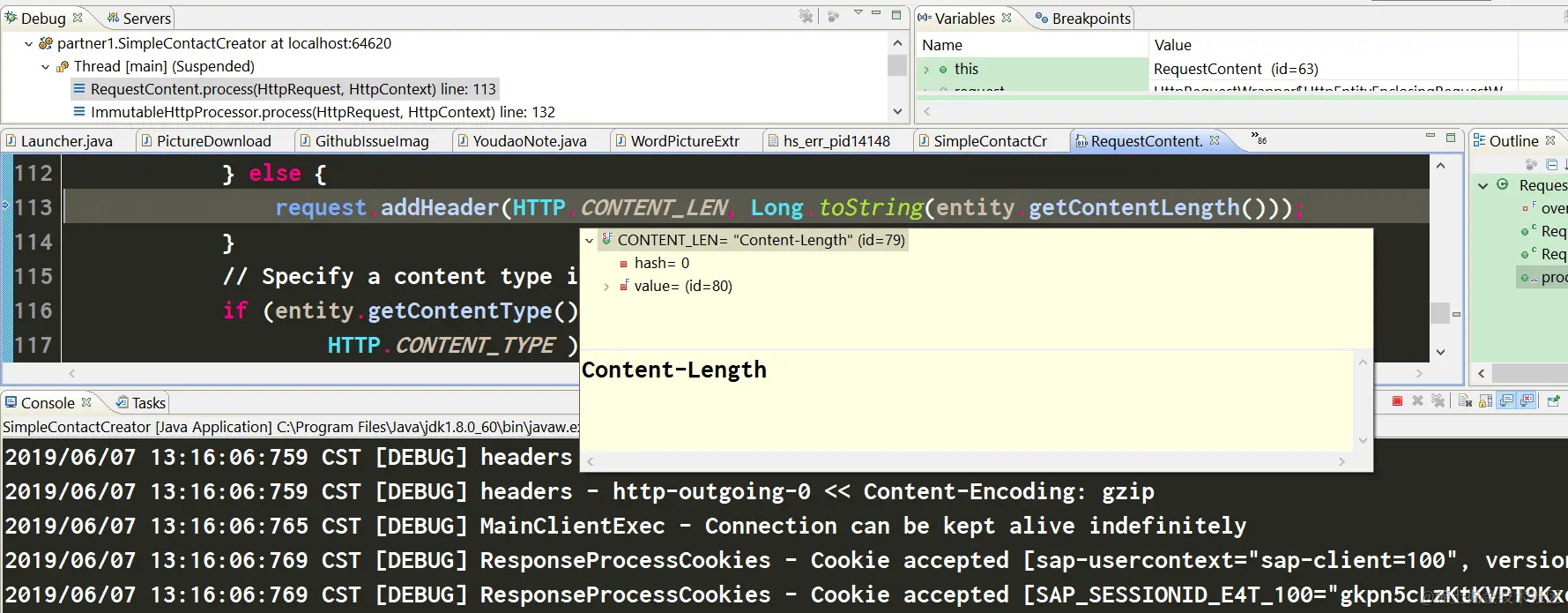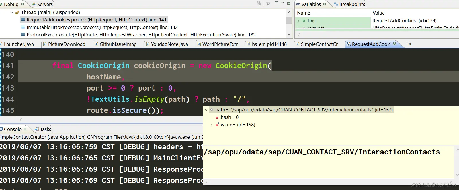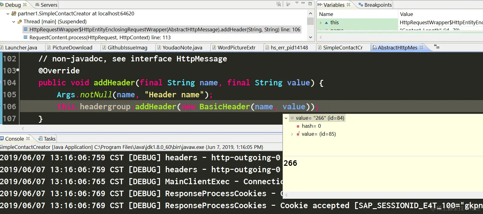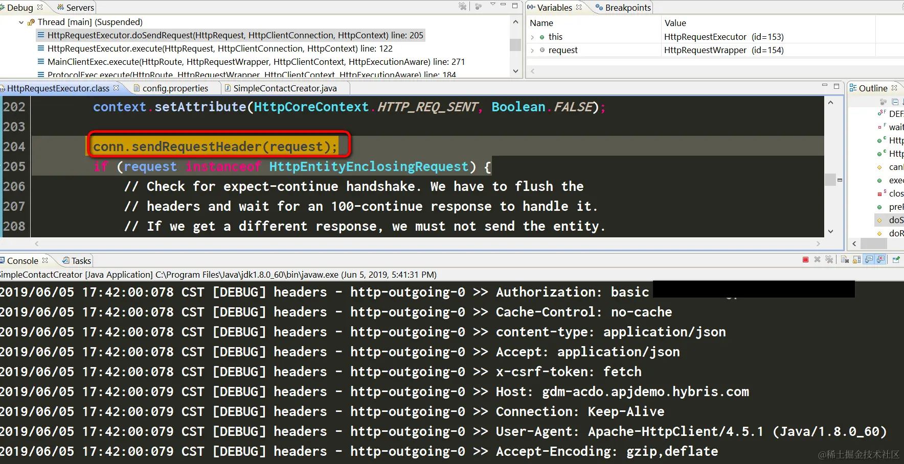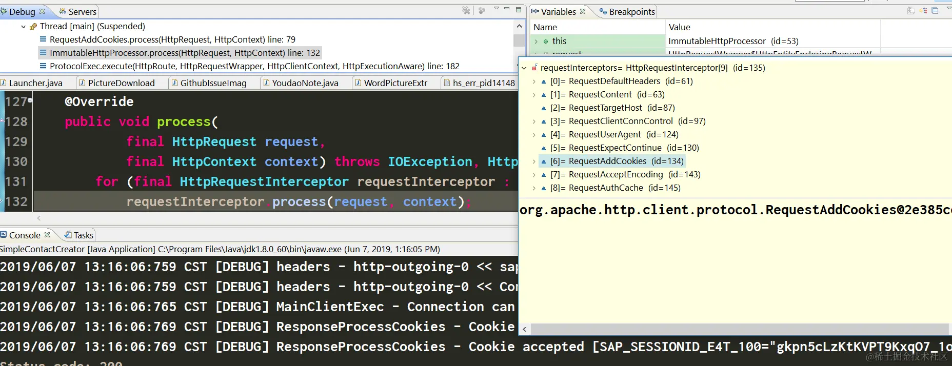 经过观察发现,一旦我执行完204行的conn.sendRequestHeader方法,就能观察到Cookie被自动设置了,所以奥妙就在第204行里。