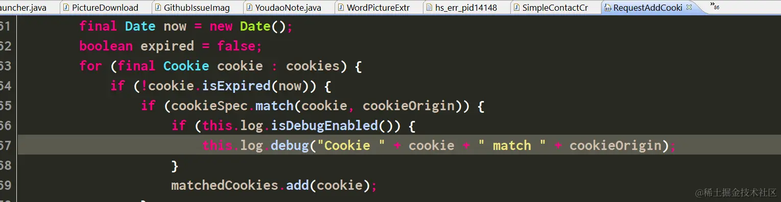 终于到了我要找的RequestAddCookies这个HTTPRequestInterceptor了。光从这个类的字面意思就能猜到它和HTTP请求的Cookie有关。