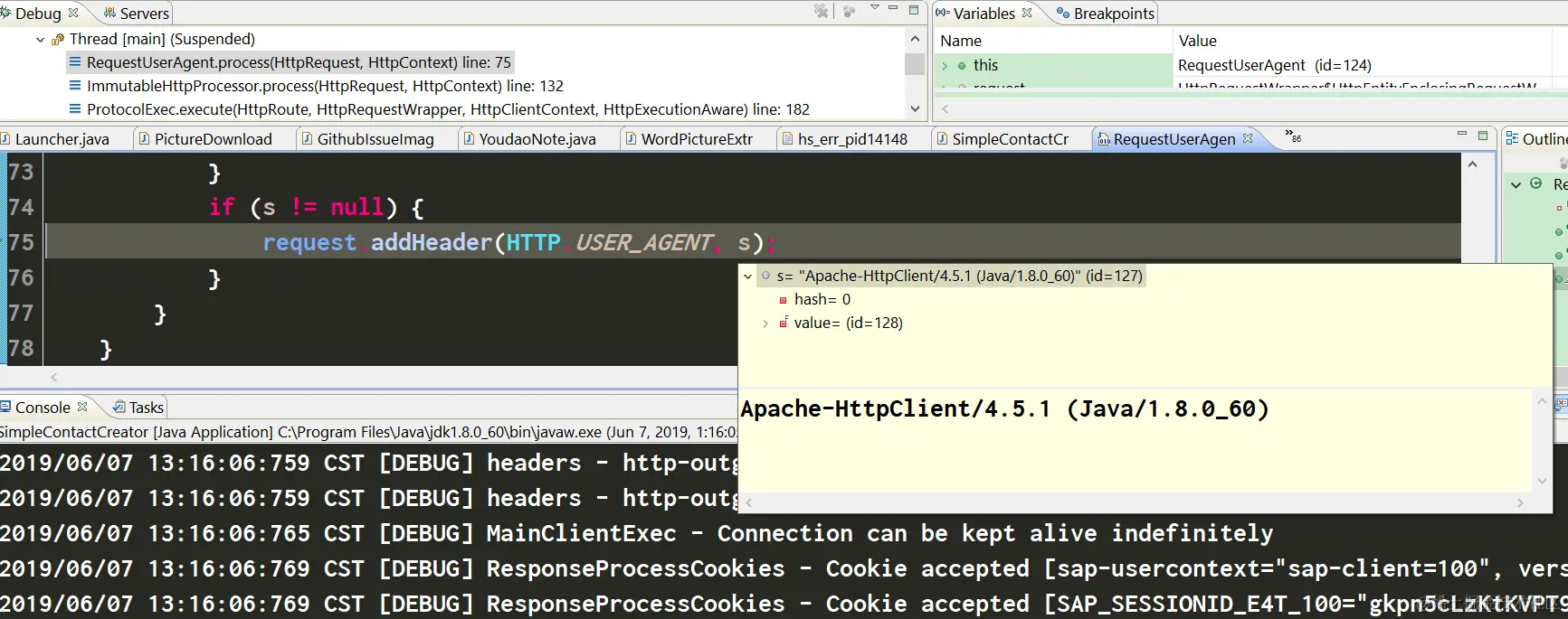 UserAgent的自动填充:Apache-HttpClient/4.5.1, 这个也不用程序员操心。