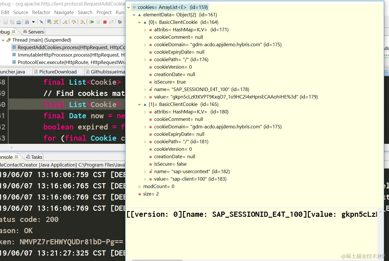 这里把Cookie store里的cookie加到第二个请求的头部字段,谜底就这样解开了。