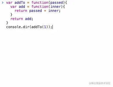 将上方代码执行可以发现,内部函数 add 在函数返回后依然可以访问到为 addTo 传入的参数。