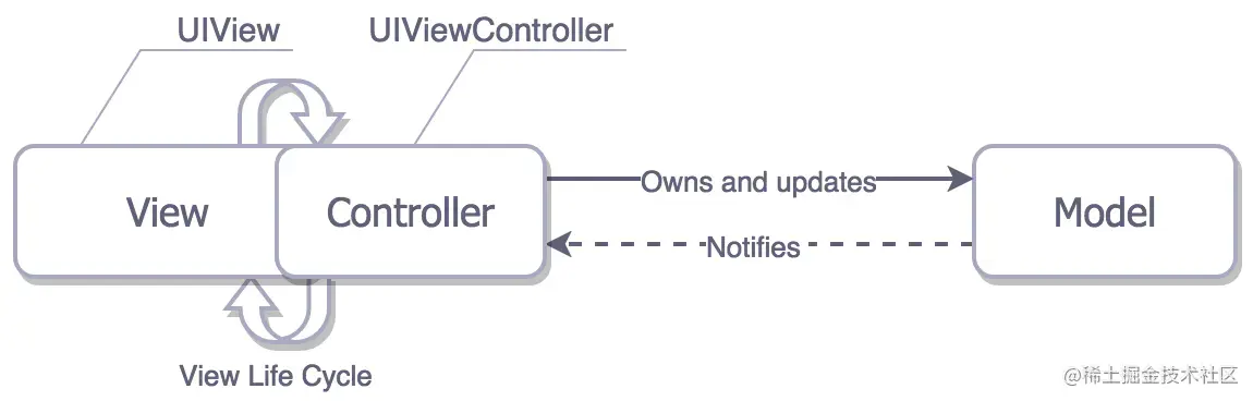 苹果认为传统的MVC模式中,View通过Observer模式直接观察Model对象以获取相关的通知,而这样的设计会导致View和Model对象不能被广泛复用,因为View与其观察的Model之间存在耦合关系。因此,苹果版MVC与传统MVC基本一致,只是隔离了View和Model。