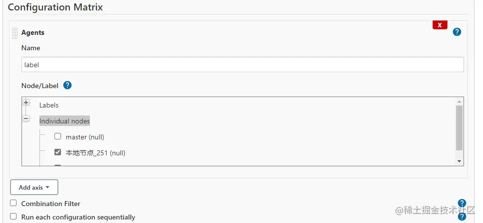 4.Configuration Matrix选项处点击Individual nodes(各个节点),选择要构建的节点
