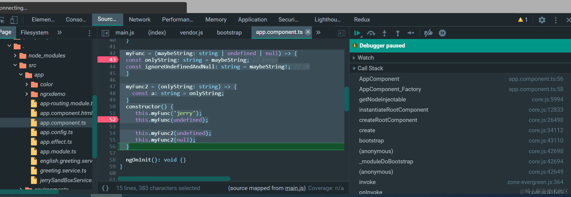 const ignoreUndefinedAndNull: string = maybeString!; // Ok