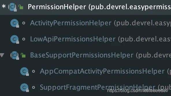 先看一下源码,通过PermissionRequest的getHelper()取到PermissionHelper,然后调用的requestPermissions方法申请权限