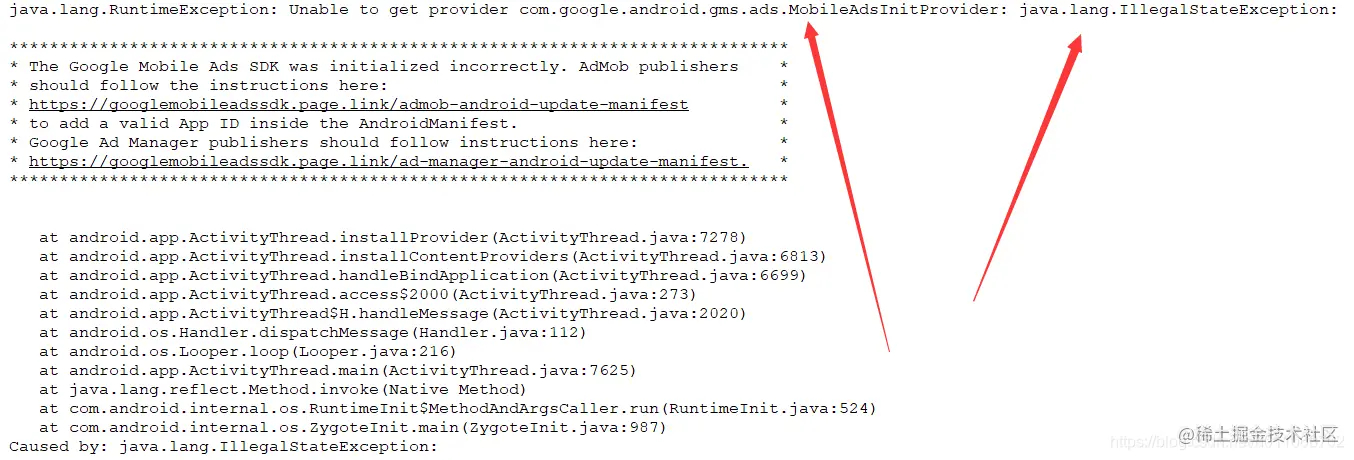 java.lang.RuntimeException: Unable to get provider com.google.android.gms.ads.MobileAdsInitProvider: java.lang.IllegalStateException: