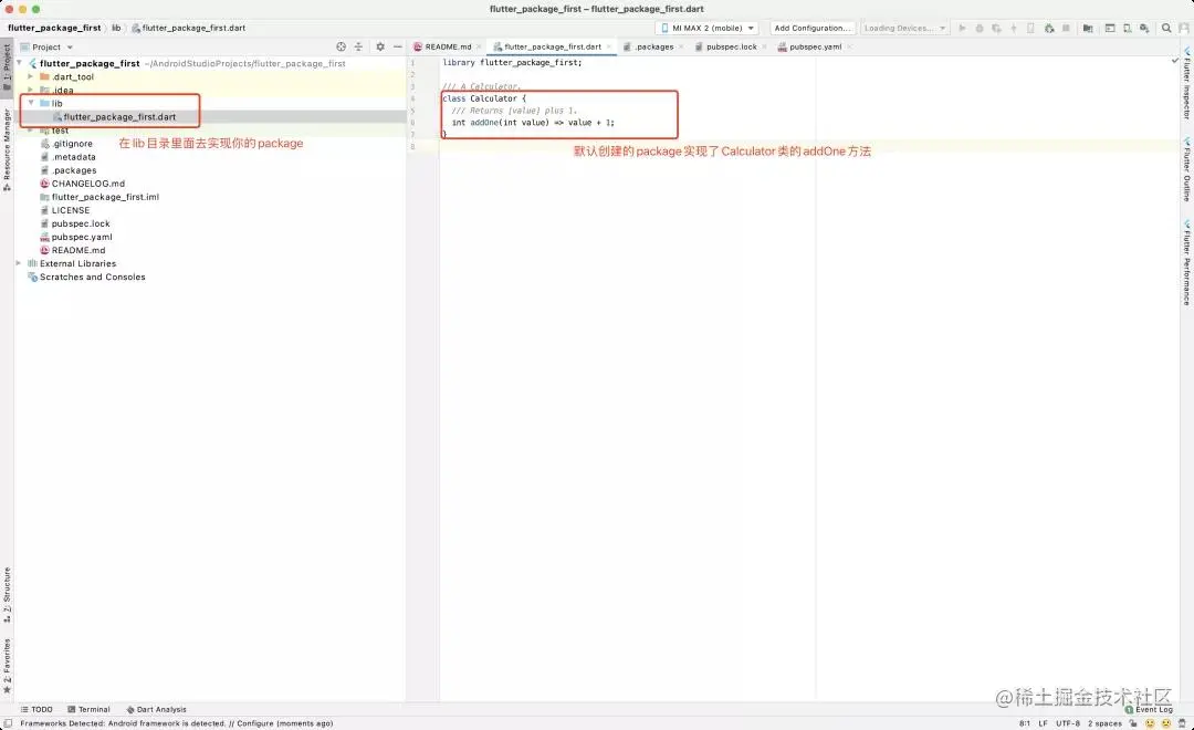 - lib/flutter_package_first.dart 文件 ## package 的 Dart 实现代码