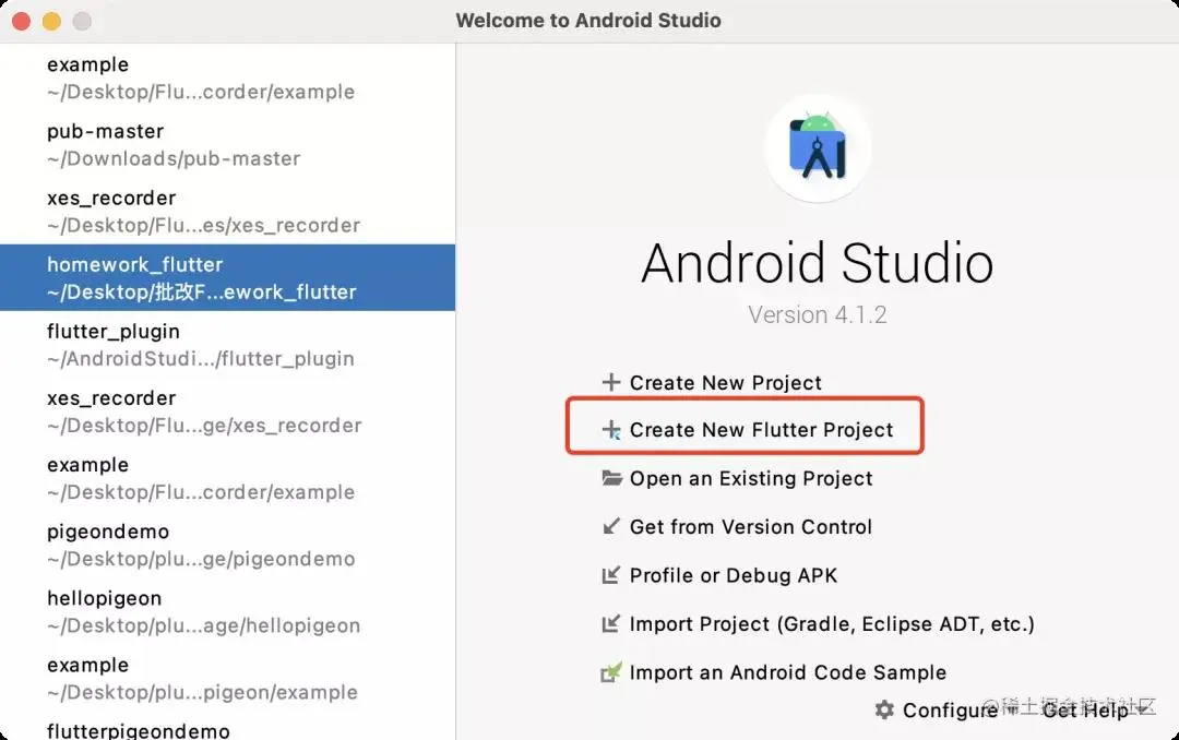 - 打开Android Studio -> 选择Create New Flutter Project;