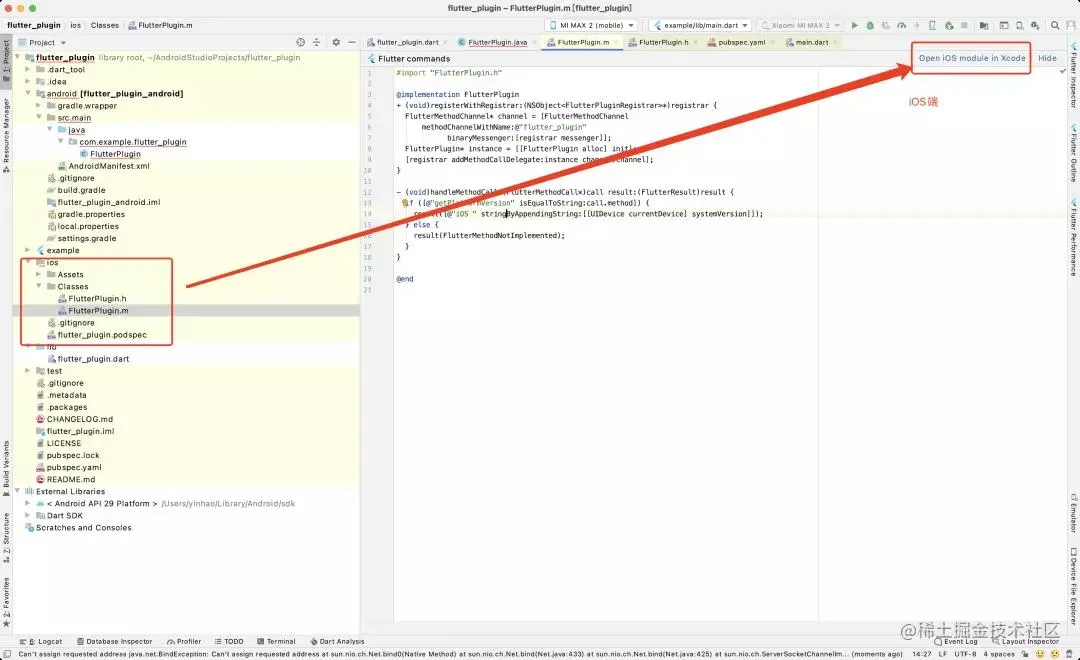 - ios/Classes/FlutterPlugin.m 文件 ## iOS 平台原生插件 API 实现(使用 Objective-C 编程语言)。