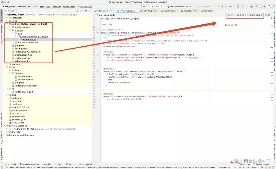 - android/src/main/java/com/example/flutter_plugin/FlutterPlugin 文件 ## Android 平台原生插件 API 实现(使用 Kotlin 编程语言)。