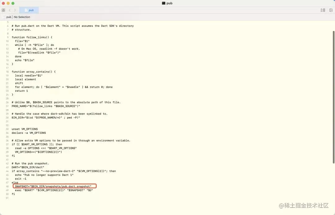 5)然后用编辑器打开${flutterSDKPath}/bin/cache /da rt-sdk/bin/pub 文件;