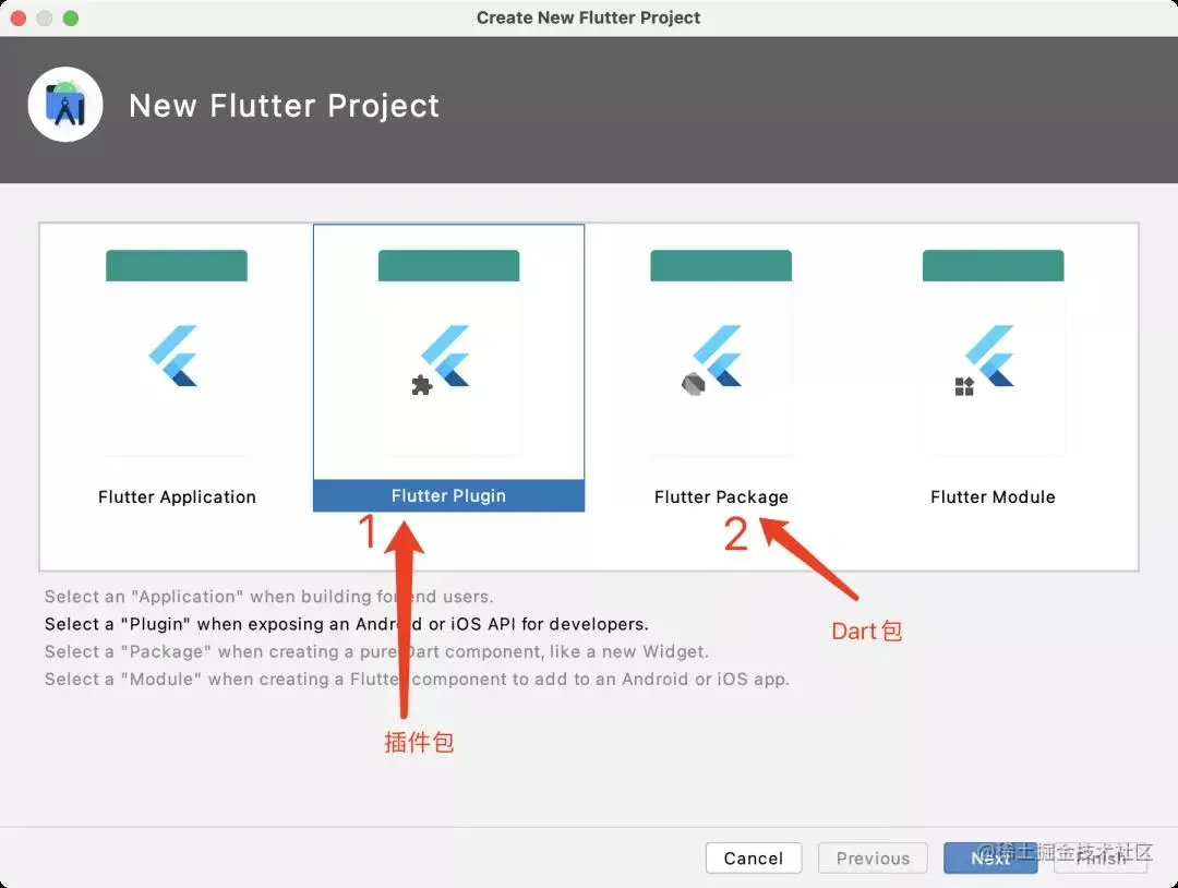 - 如果想要创建插件包 则选择Flutter Plugin;