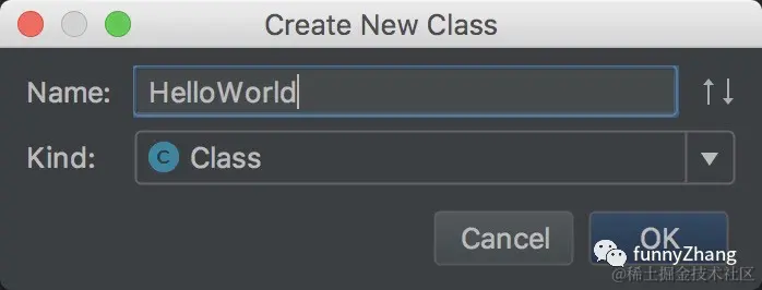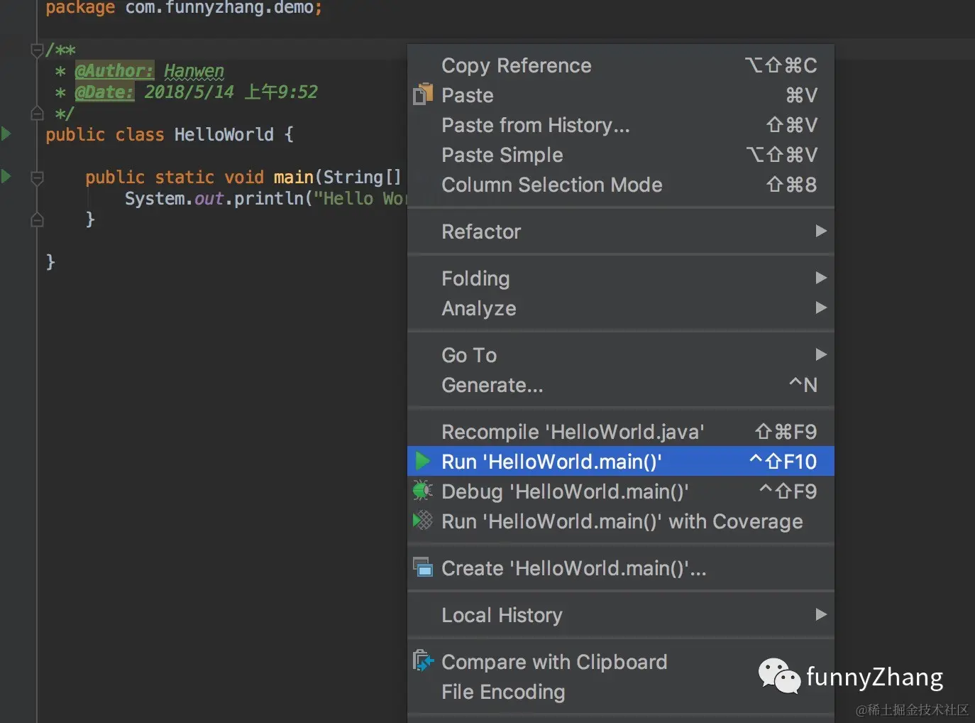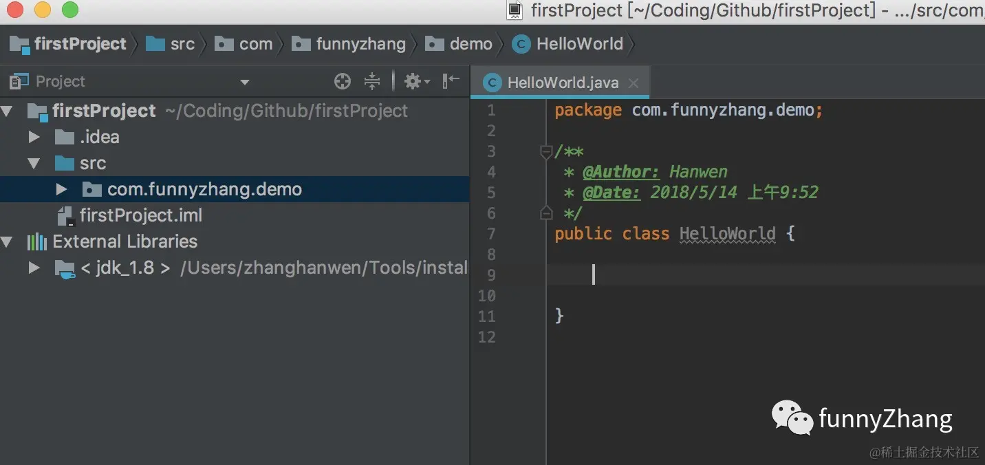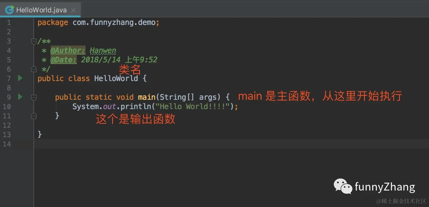 8、创建完 HelloWorld 类,可以看到下面的效果。