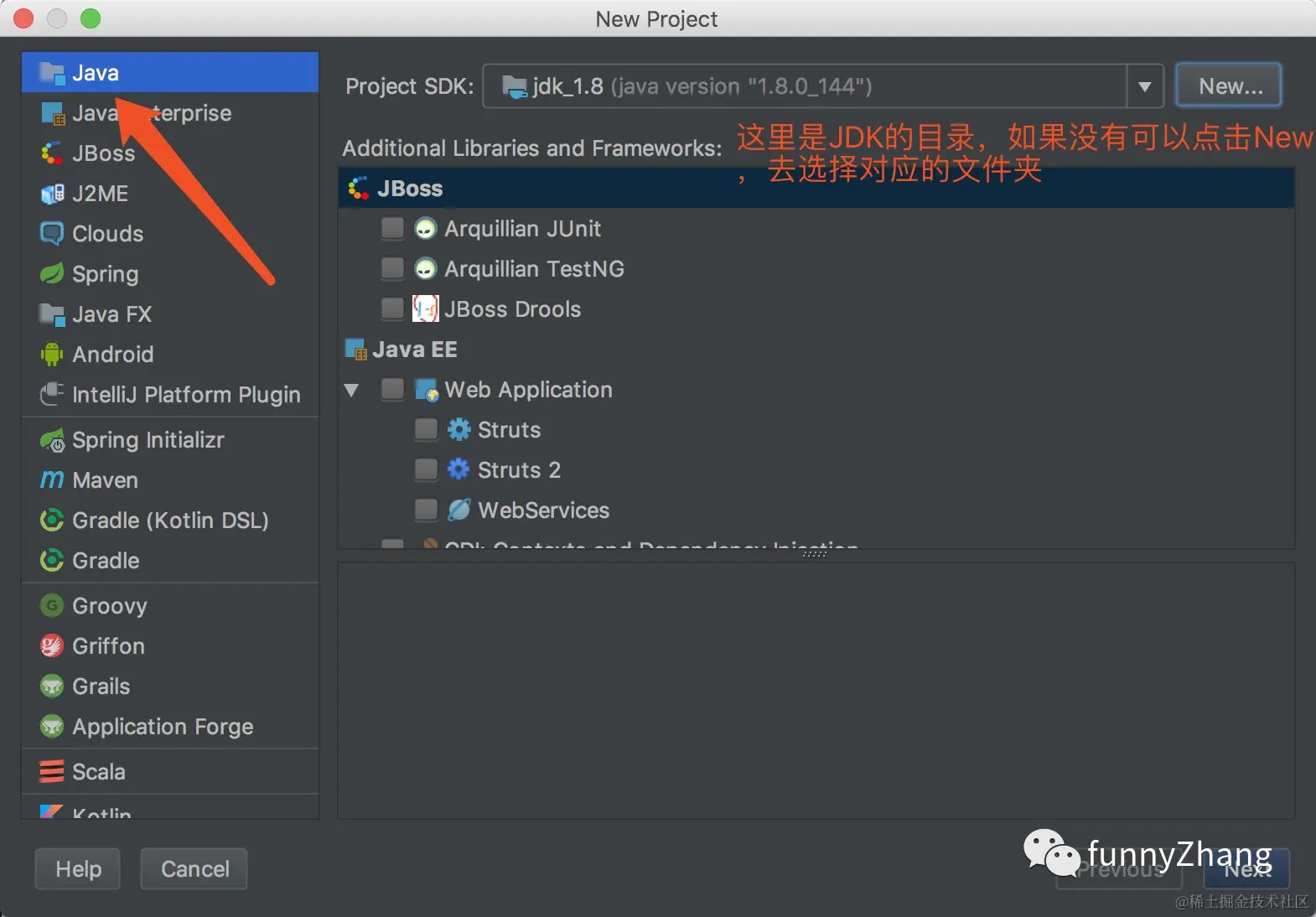 2、在弹出的对话框中,选择 Java,第一次使用的时候,要选择我们之前下载好的 JDK 文件。