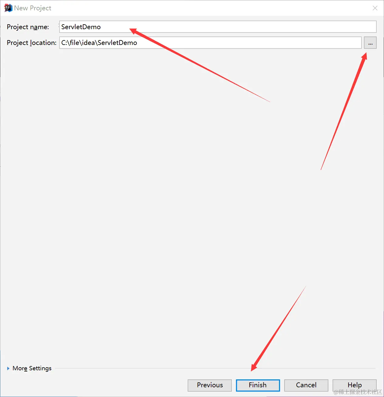 编辑好项目名称和存放目录后点击finish,这里我们把这个项目命名为ServletDemo