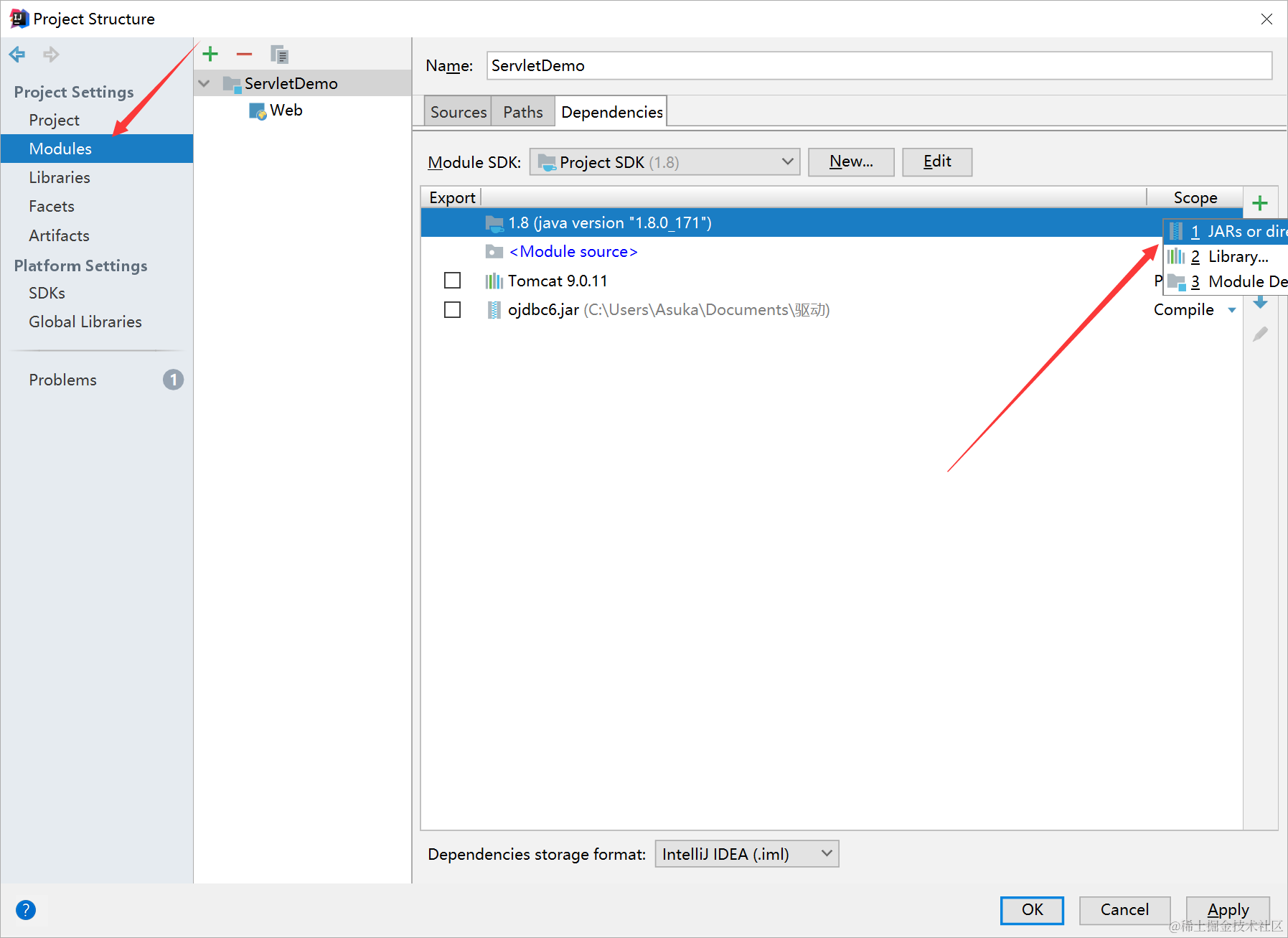 点击右侧加号,选择JARs or dir