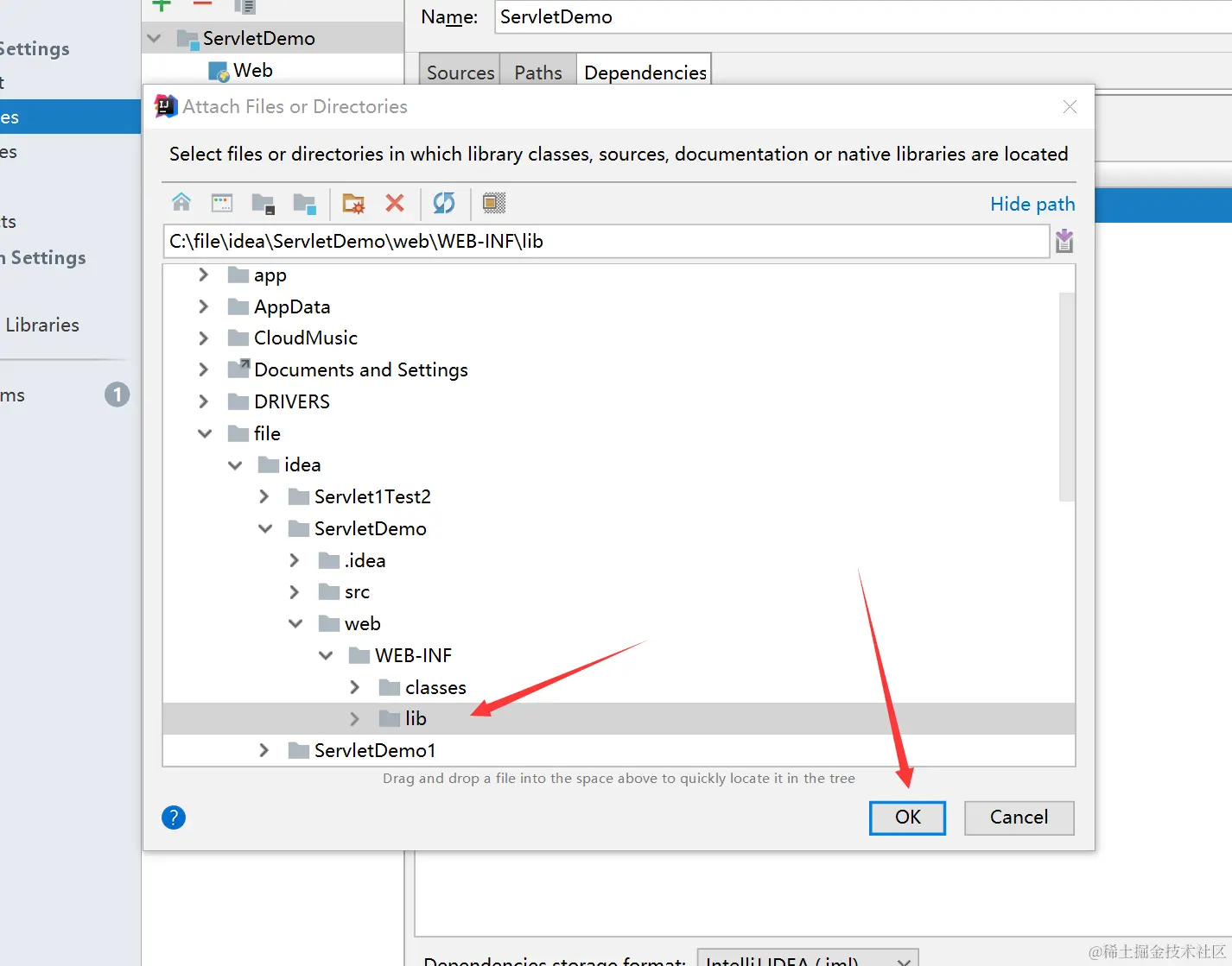 再依次选择刚才新建的lib目录和类型,类型选择Jar Directory